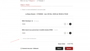 - Lorsque vous allez sur site pour réserver votre séance, cochez la case “J’ai un code de réduction. »