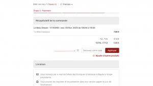 - Votre commande est passée, allez voir dans votre boîte mail pour récupérer votre ticket à imprimer ou à présenter sur votre smartphone.